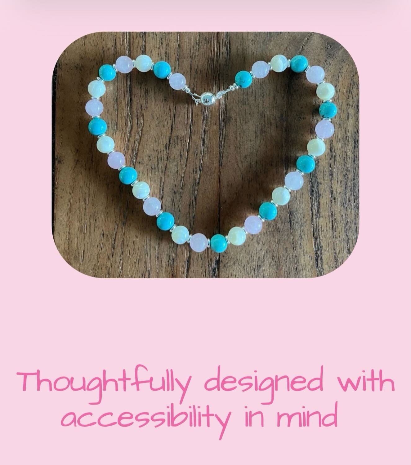 Welcome to my world of gemstone beaded necklaces—beautiful, wearable and delightfully easy. Every design features an accessible magnetic clasp and is lovingly named after an influential woman in my life. I hope you adore each piece as much as I enjoyed creating them. Come on in, experience beauty that's effortless and made just for you.